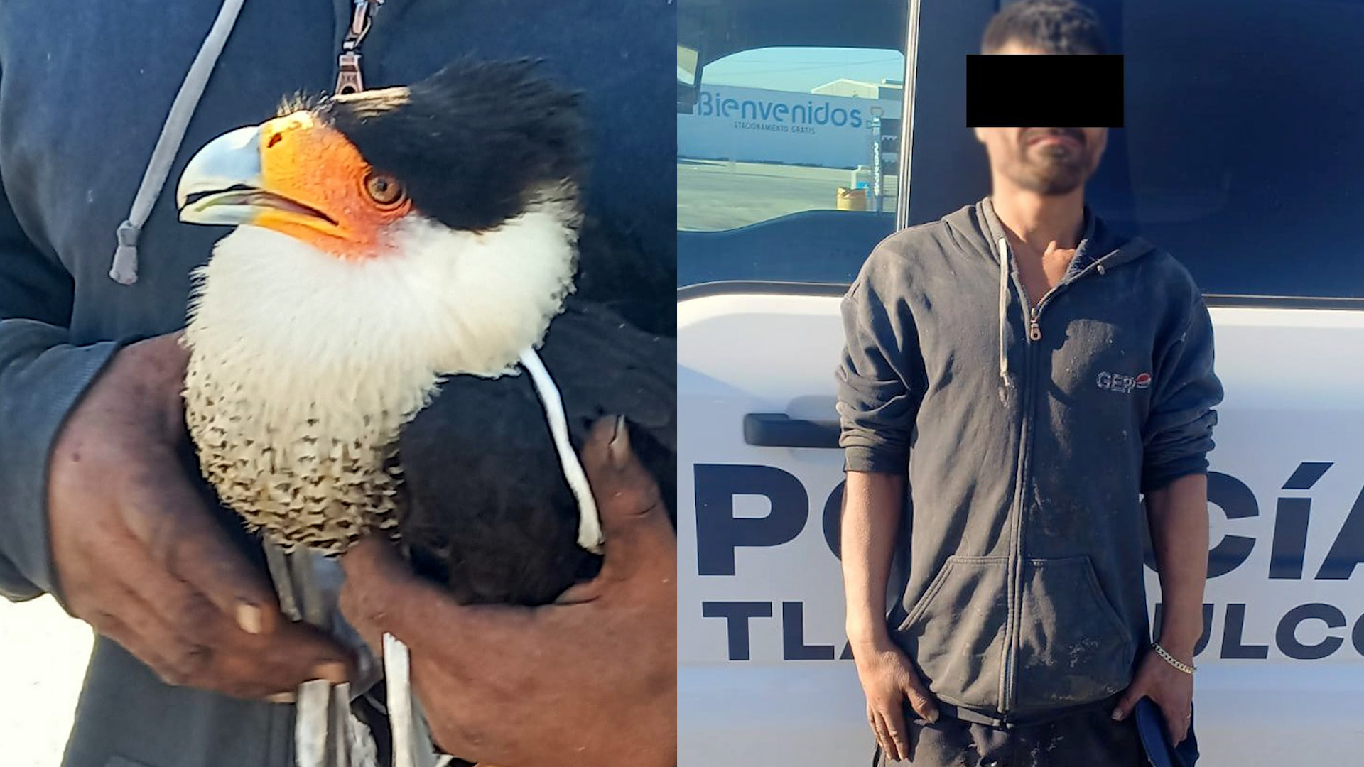 Oficiales de la Comisaría de la Policía Preventiva Municipal de Tlajomulco detuvieron a un hombre por presuntos delitos contra la biodiversidad, luego de ser sorprendido en posesión de un halcón Caracara.